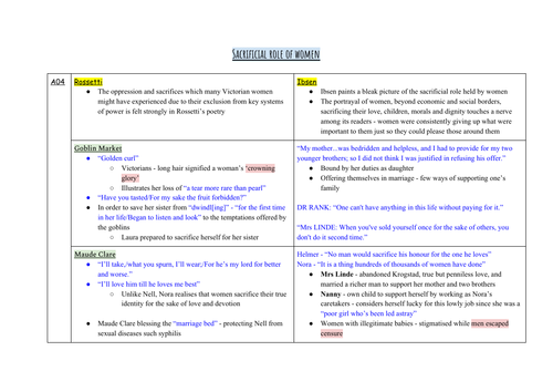 A Doll S House And Rossetti Notes Teaching Resources